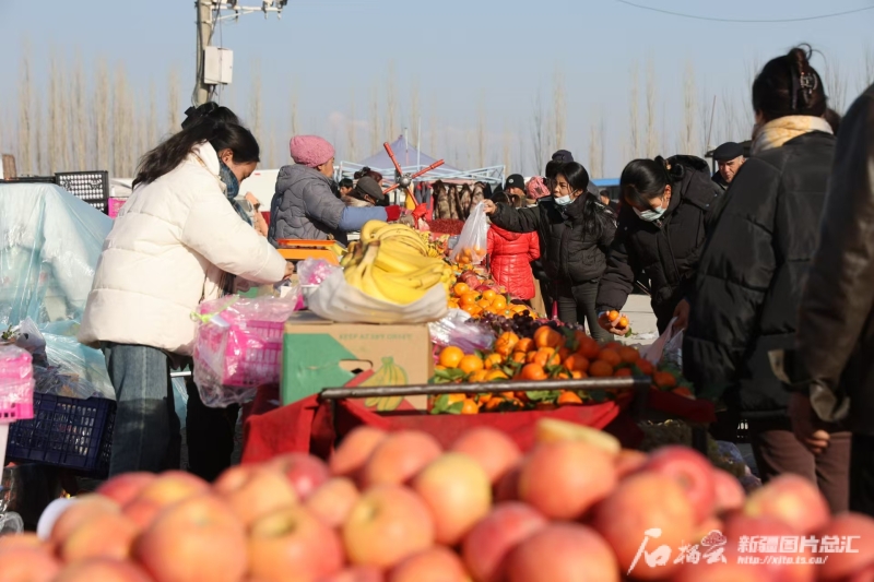 1月11日,烏什縣亞曼蘇柯爾克孜族鄉(xiāng)巴扎上煙火氣十足。外力·克依木 攝