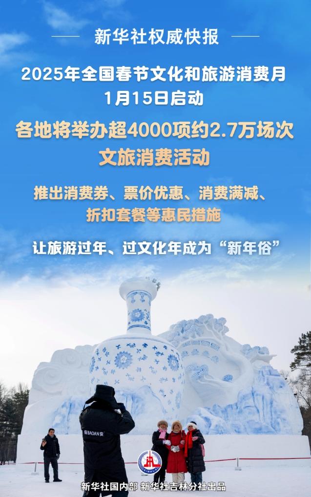 1月15日,2025年全國春節(jié)文化和旅游消費月主場活動在吉林省長春市舉辦,開啟全國春節(jié)文化和旅游消費月。