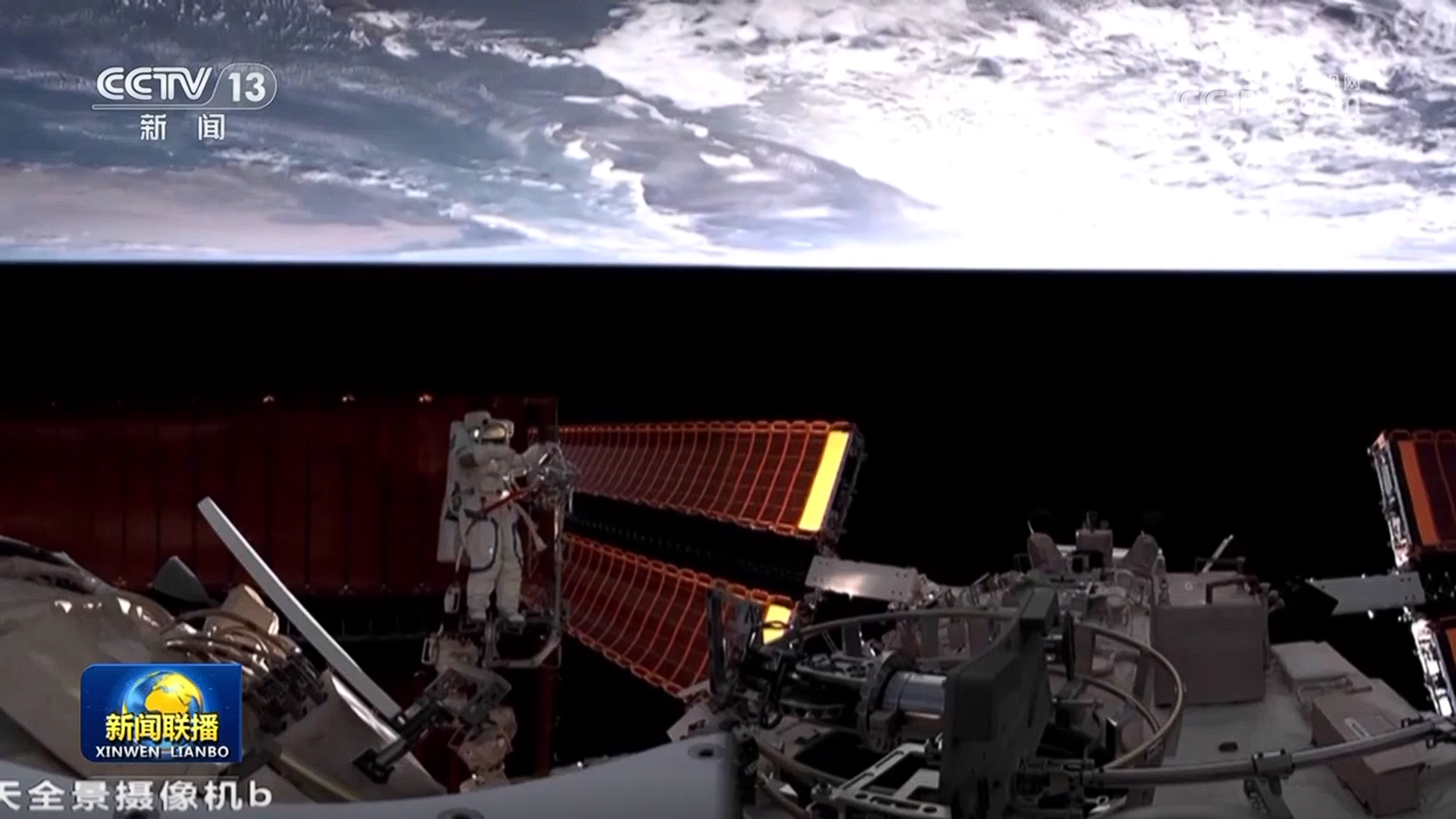 約2個(gè)小時(shí)后,蔡旭哲順利出艙,沿艙壁自主轉(zhuǎn)移至作業(yè)點(diǎn),與宋令東協(xié)同配合,對問天艙線纜進(jìn)行防護(hù)裝置的安裝操作。其間,航天員王浩澤在天和核心艙內(nèi)進(jìn)行支持。