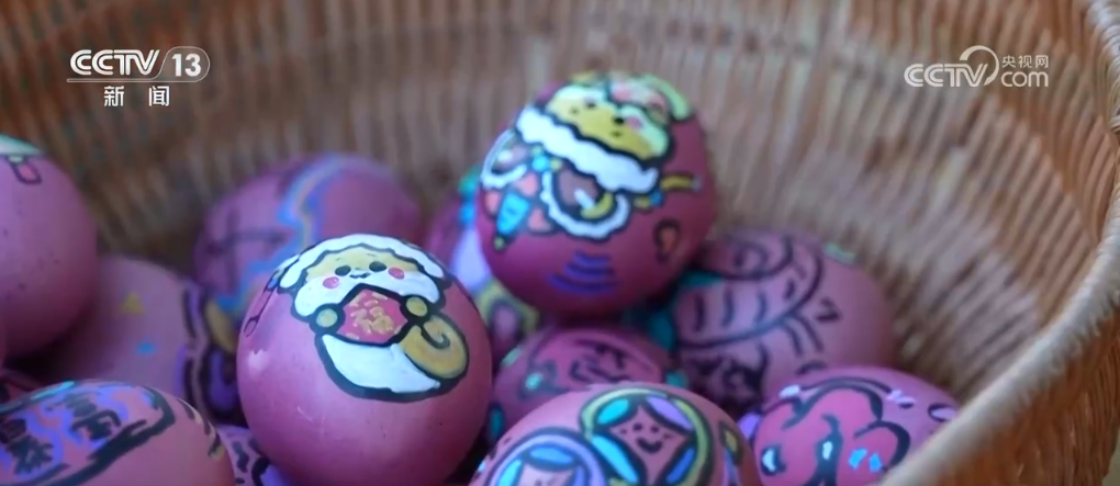 這場(chǎng)“村晚”可是村里的大事兒,當(dāng)天下午,村民們就忙碌起來(lái)。舂粑粑、畫(huà)紅蛋、炸麻脆,美食的香氣在村子里彌漫,而要上場(chǎng)的演員們也都已經(jīng)裝扮起來(lái)。