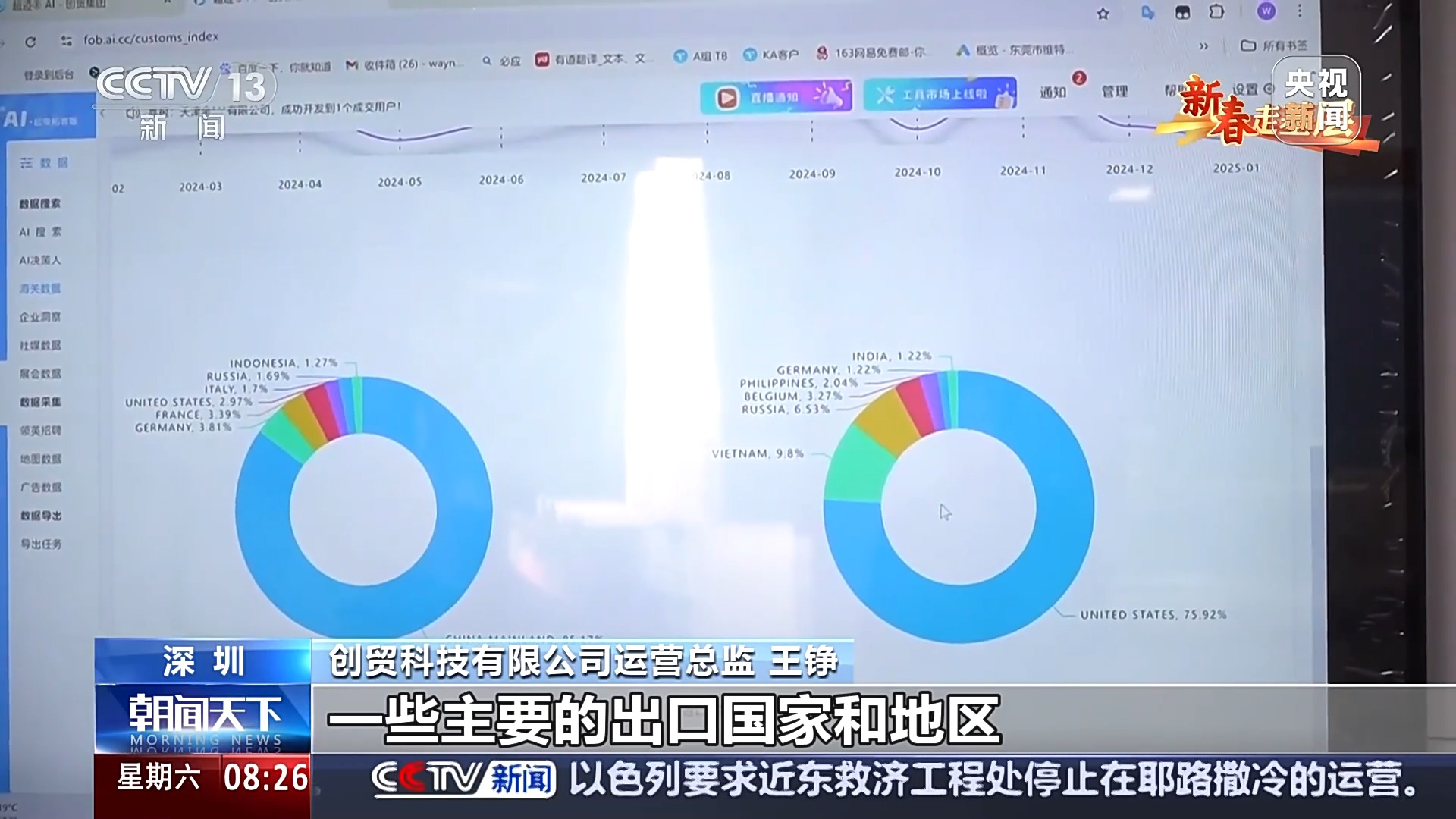 創(chuàng)貿(mào)科技有限公司運營總監(jiān) 王錚:我們統(tǒng)計了一下,目前全球關于這一款產(chǎn)品的一些主要的出口國家和地區(qū),以及進口國家和地區(qū)也是展示出來了。