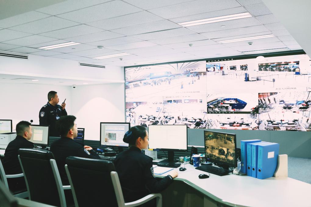 指揮中心的大屏上,機場每個角落的現(xiàn)場視頻一目了然。“我們會根據(jù)大屏觀察出入境現(xiàn)場人流量,及時優(yōu)化調(diào)配警力;適時介入各類案事件、協(xié)調(diào)聯(lián)絡機場相關部門給予協(xié)助,確??诎妒冀K處于平穩(wěn)、順暢的狀態(tài)。”大興機場邊檢站邊檢處處長李欣說。