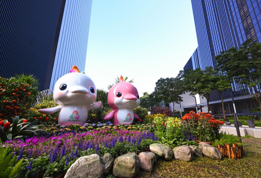 在金鐘,2米多高的第十五屆全國運(yùn)動(dòng)會吉祥物“喜洋洋”“樂融融”從除夕開始現(xiàn)身添馬公園,與大家共賀新春,喜迎全運(yùn)。