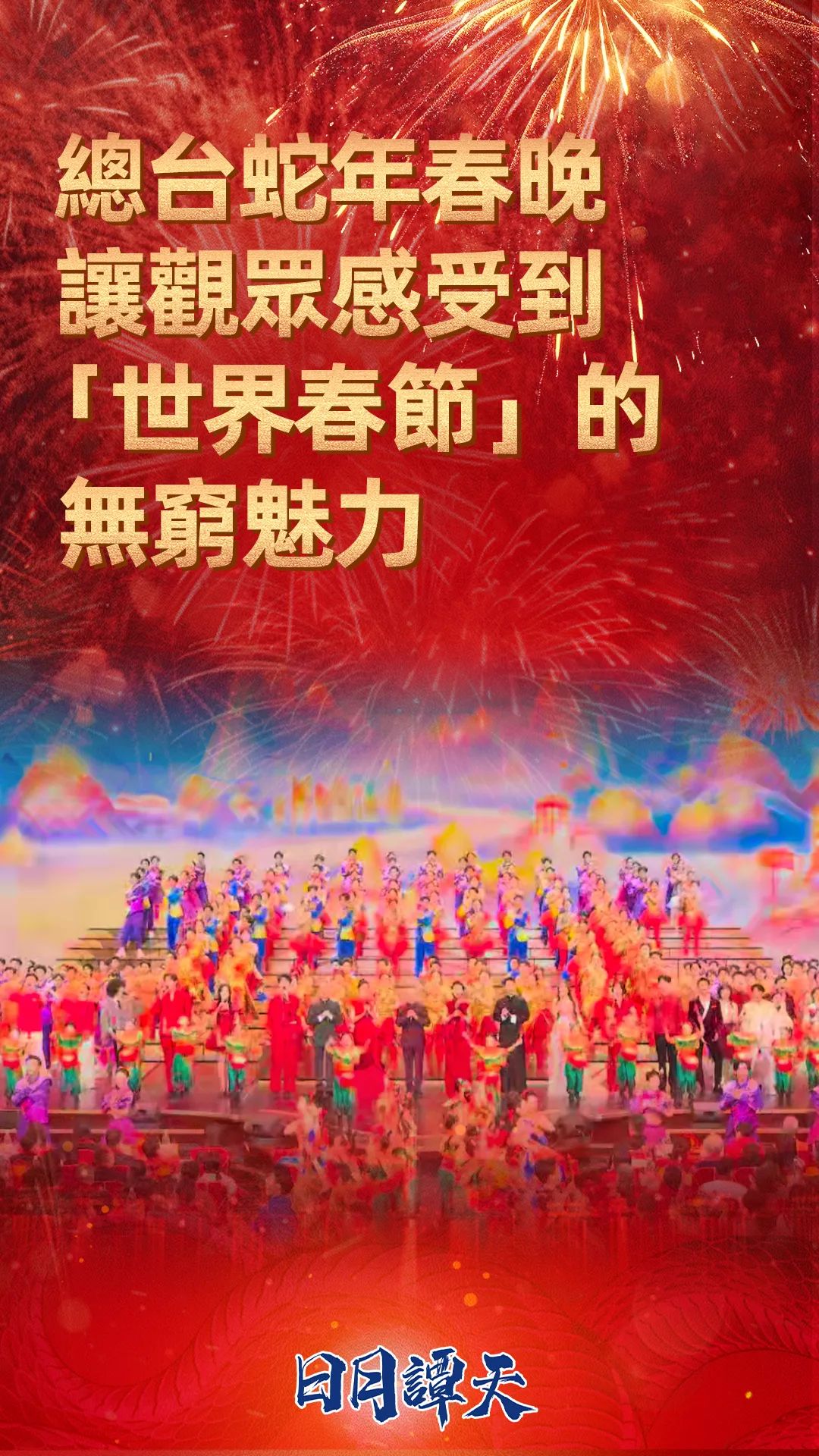 譚主注意到,蛇年春晚創(chuàng)新運用新技術(shù)、多元展現(xiàn)國家發(fā)展成果,向全球受眾描繪“世界春節(jié)”的時代色彩。