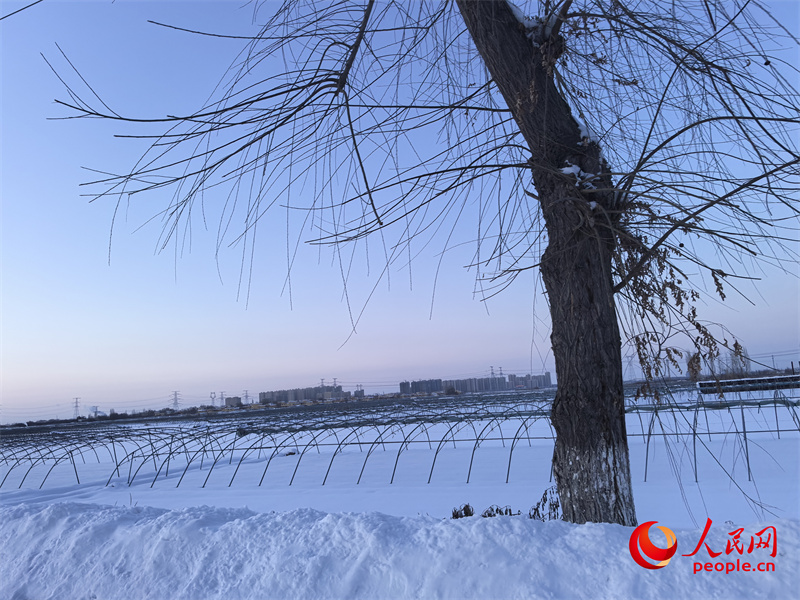 天山腳下,青格達(dá)湖邊,下了一天一夜的大雪剛停,劉建軍就去了隔壁新聯(lián)村的清潔能源智能溫室育苗大棚,看看前幾天育的茄子發(fā)芽了沒(méi)。