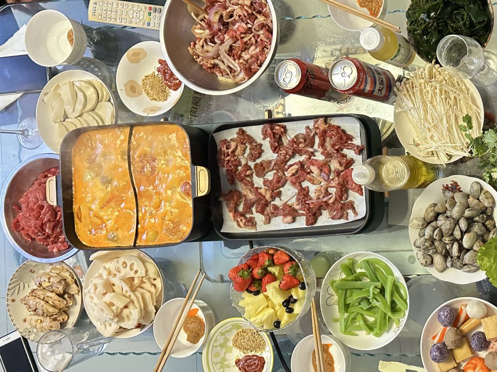 河南的小鄭向爸媽提議換個(gè)方式吃年夜飯,一家四口用“一體鍋”實(shí)現(xiàn)了“火鍋和烤肉自由”;北京市民毛毛(化名)家里的年夜飯墊上了暖菜板,她說(shuō)“不用擔(dān)心吃到一半菜涼了”,飯后她用果蔬清洗機(jī)為家里人洗了水果……