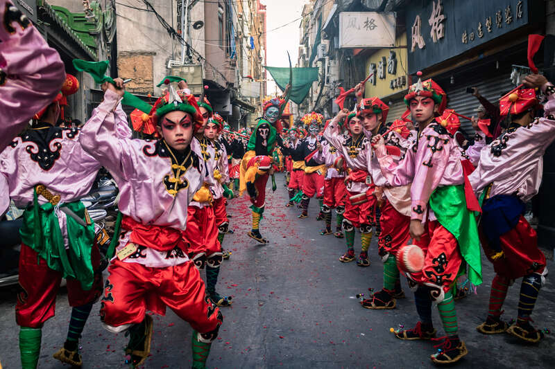 作為甲子鎮(zhèn)的傳統(tǒng)民俗活動(dòng),甲子英歌幾乎記錄了這個(gè)海邊小鎮(zhèn)的“明清史”:英歌舞明朝從福建傳入時(shí),甲子鎮(zhèn)正受倭寇威脅,英歌隊(duì)采用了當(dāng)時(shí)軍人的方陣隊(duì)形作為表演隊(duì)形;后來(lái)海盜、山寇來(lái)了,甲子鎮(zhèn)實(shí)施閑時(shí)為民,戰(zhàn)時(shí)為兵的策略,組織民眾學(xué)習(xí)武藝,甲子英歌又融入了武術(shù)動(dòng)作。