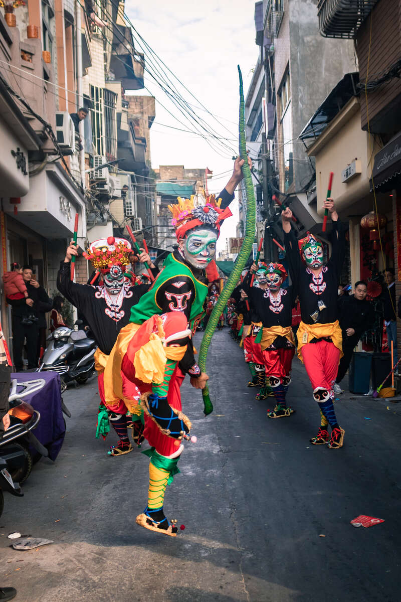 “時(shí)遷”舞著蛇,站在隊(duì)伍的最前頭。受訪者供圖