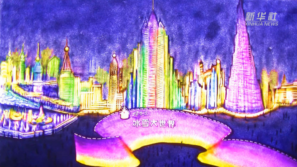 創(chuàng)意沙畫《逐夢(mèng)亞冬會(huì) 相約哈爾濱》用指尖繪就了哈爾濱的冰雪美景以及各類冰雪競(jìng)技項(xiàng)目,振奮人心。讓我們一起為亞冬會(huì)送上一份祝福,祝愿每一位運(yùn)動(dòng)員都能在賽場(chǎng)上釋放全部能量,讓夢(mèng)想在冰天雪地中綻放最耀眼的光芒。
