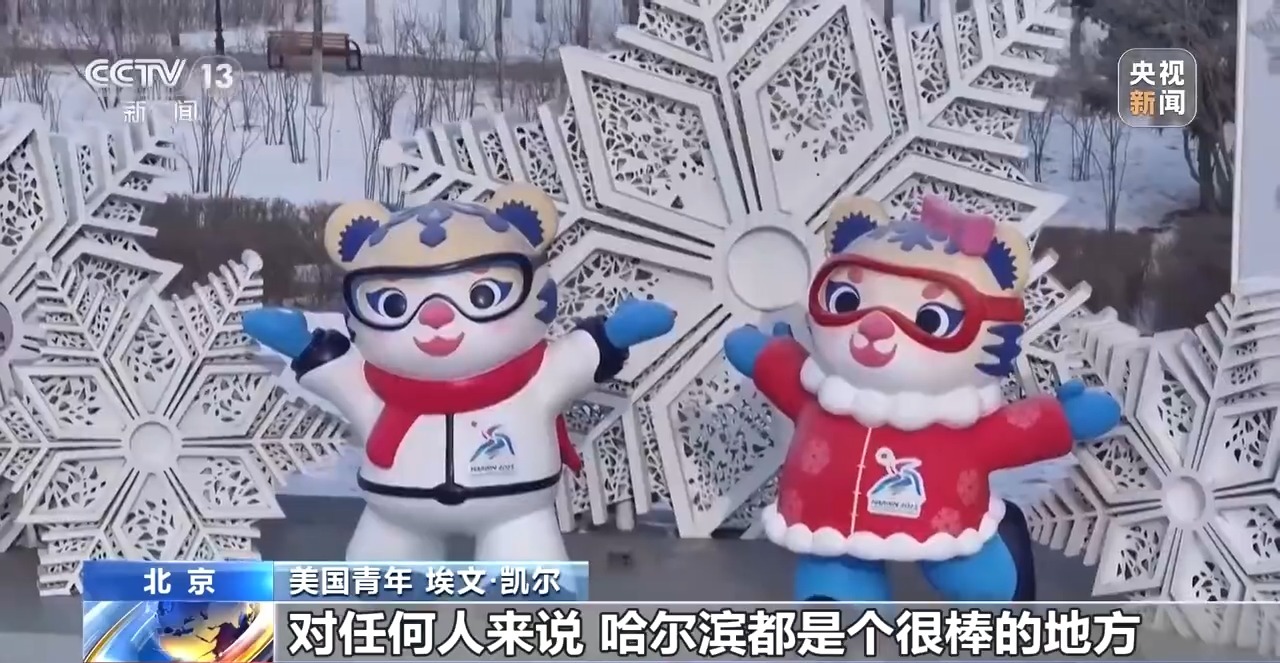 美國(guó)青年 埃文·凱爾:對(duì)任何人來(lái)說(shuō),哈爾濱都是個(gè)很棒的地方,這里盛行冬季運(yùn)動(dòng)。我特別喜歡吉祥物——妮妮和濱濱,老虎造型太可愛(ài)了。大家對(duì)我非常友好,我度過(guò)了一段美好時(shí)光。人們一定會(huì)非常享受今年的亞冬會(huì)。