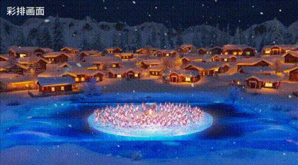 天寒地凍的松花江上,整齊劃一的采冰漢子奮力揮舞冰镩,采出了對這片土地的熱愛、對美好生活的向往、對新春的祝福。當“頭冰”破江而出,自地屏翻騰至立屏之中,為亞冬健兒送去“拔得頭籌”的美好祝福。