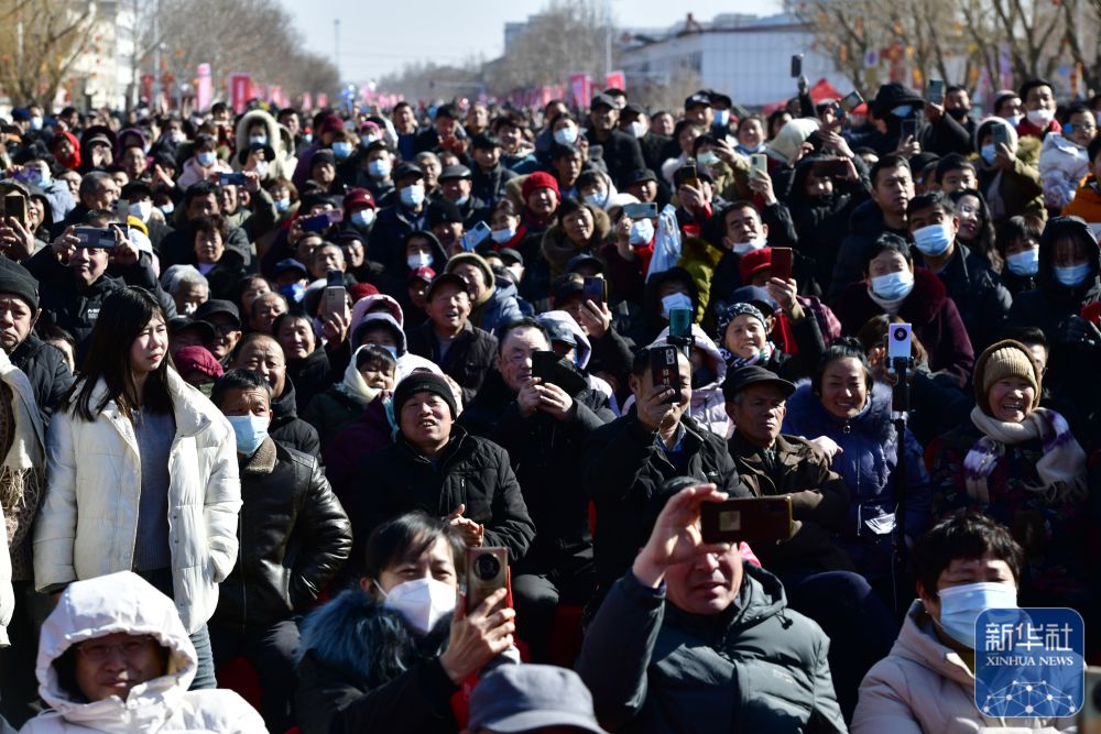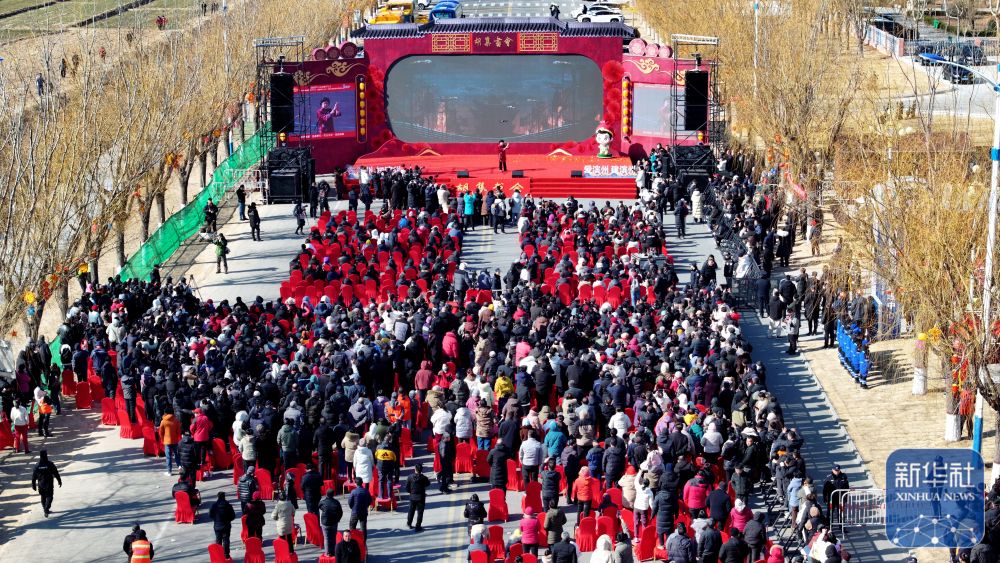 2月9日,觀眾在觀看中國(guó)曲協(xié)“送歡笑到基層”走進(jìn)惠民專場(chǎng)演出(無人機(jī)照片)。