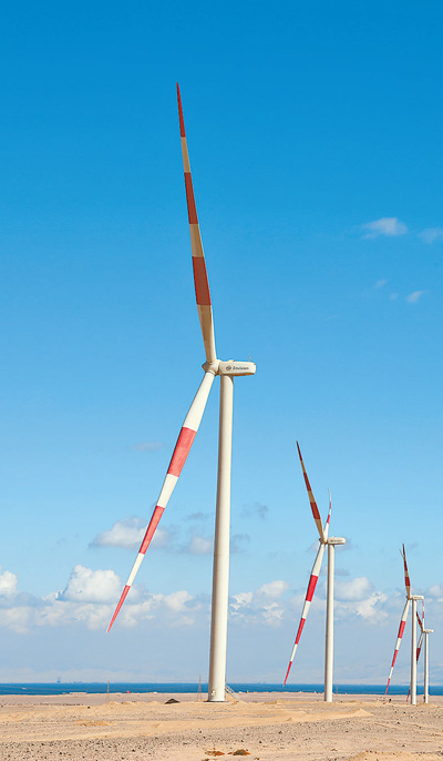 蘇伊士灣風(fēng)電項(xiàng)目位于埃及首都開羅以南約300公里的蘇伊士灣西岸小鎮(zhèn)拉斯·加里卜。項(xiàng)目共有77臺(tái)風(fēng)電機(jī)組,建成后預(yù)計(jì)每年可生產(chǎn)約27億千瓦時(shí)的清潔電力,實(shí)現(xiàn)二氧化碳減排約100萬噸。穆罕默德說:“在這片曠野上工作,把蘇伊士灣的風(fēng)轉(zhuǎn)化成電能,‘點(diǎn)亮’萬家燈火,我感到十分驕傲?!?/p>
