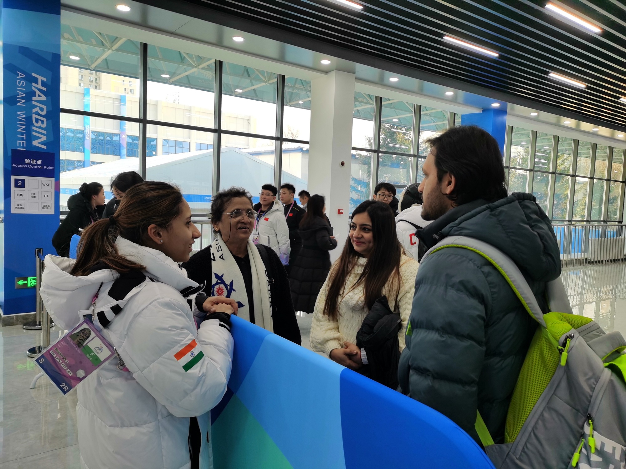 印度速度滑冰選手詩魯?shù)俚募胰?,也選擇這次亞冬會的機會,來到哈爾濱與她團聚。詩魯?shù)俚慕憬惆涂说俑嬖V記者,印度的滑冰訓(xùn)練條件有限,為了追逐夢想,妹妹常年在美國訓(xùn)練,一家人難得有機會聚在一起。