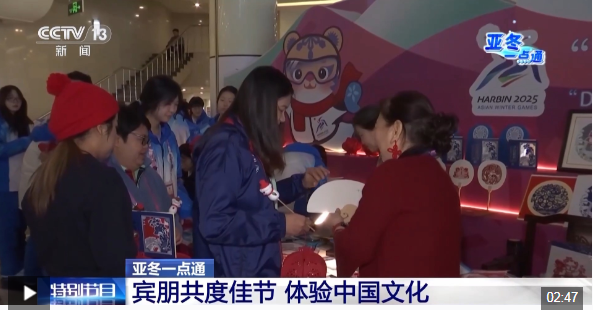 總臺(tái)央視記者 王晨:我現(xiàn)在是在位于哈爾濱亞冬會(huì)運(yùn)動(dòng)員村的一樓展廳,這里正在舉行“冰雪同夢·亞洲同心”非物質(zhì)文化遺產(chǎn)展示活動(dòng)。今天是開幕式后的第五個(gè)比賽日,展示活動(dòng)持續(xù)進(jìn)行中,有金漆技藝、方正剪紙、木雕重彩、皮影戲等非遺代表性項(xiàng)目展臺(tái)。