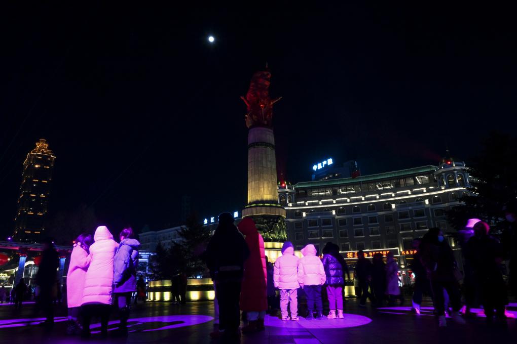 人們在哈爾濱市人民防洪勝利紀(jì)念塔賞月。新華社記者 黃博涵 攝