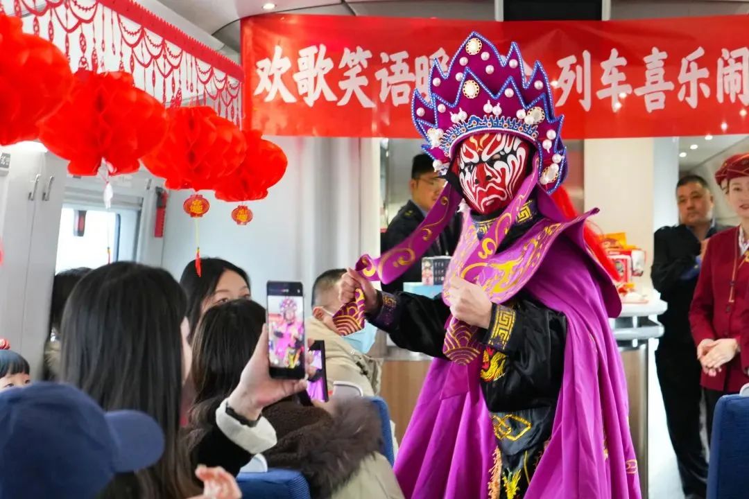 在高鐵列車上看變臉表演,體驗(yàn)太棒了!中國(guó)高鐵牛!中國(guó)非遺牛!
