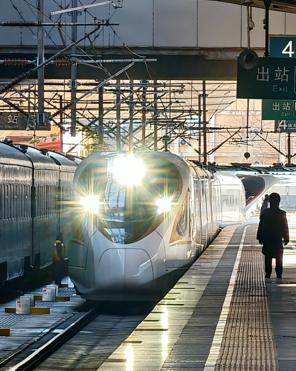 當(dāng)晨曦的第一縷陽(yáng)光穿透薄霧,金色的陽(yáng)光灑在蜿蜒伸展的鐵路線上,沿途的風(fēng)景如畫卷般緩緩展開(kāi)。