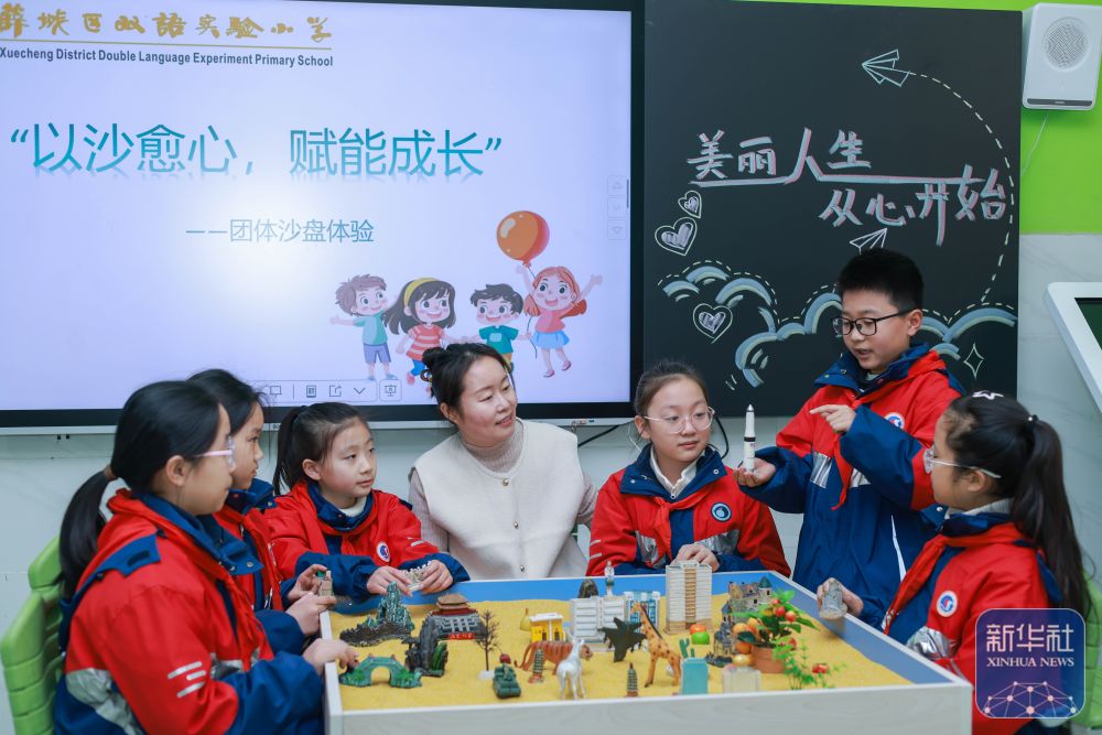 2月14日,山東省棗莊市薛城區(qū)雙語實驗小學(xué)老師為學(xué)生進行心理健康教育。新華社發(fā)(王龍飛攝)