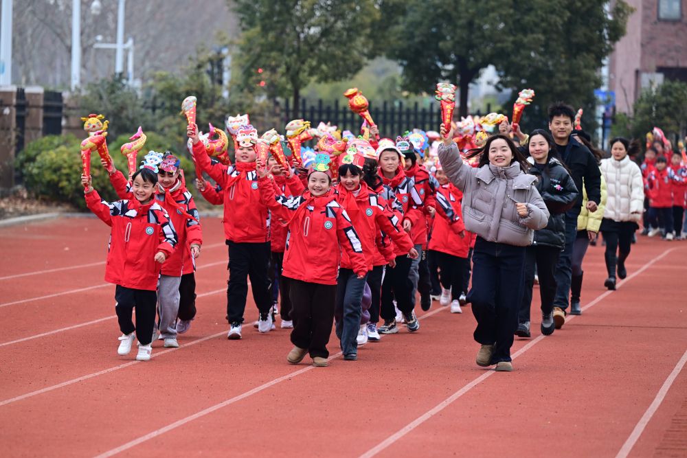 2025年2月13日,安徽省合肥市大通路小學(xué)組織學(xué)生滾鐵環(huán)。合肥市教育局供圖