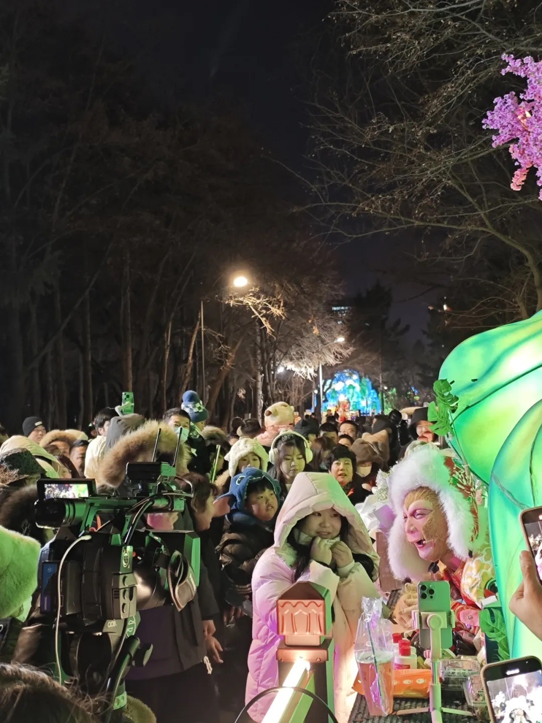 傍晚時分,大量游客冒著嚴(yán)寒涌入長春動植物公園,早早在人工搭建的“五指山”下等待“雪餅猴”……