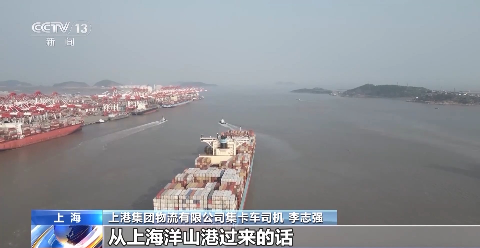 上港集團物流有限公司集卡車司機 李志強:我們每天從上海洋山港過來,應(yīng)該是六趟到七趟左右,收入肯定是比去年更可觀了。