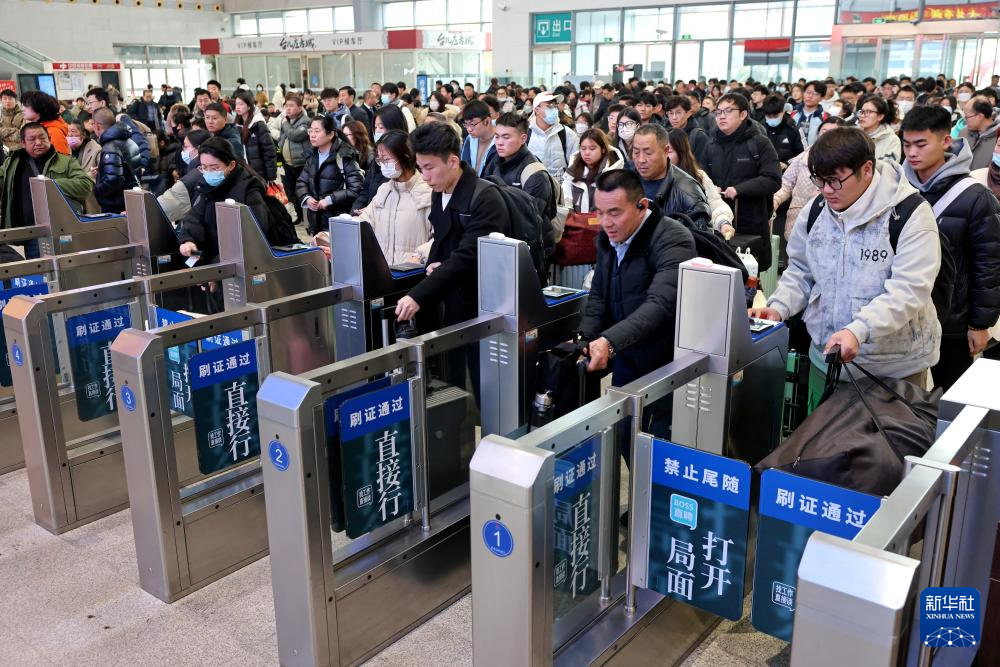 圖為2月22日,旅客在山東棗莊站通過閘機檢票進站。