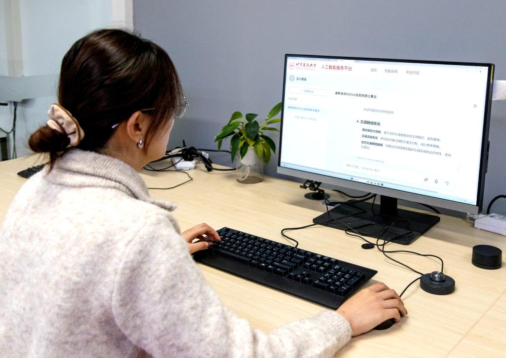 北京建筑大學學生體驗該?;贒eepSeek打造的“匠心智語”人工智能平臺。新華社發(fā)