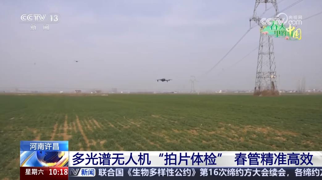 央視網(wǎng)消息:今年,全國冬小麥面積保持穩(wěn)定。目前,大部分地區(qū)冬小麥已進(jìn)入返青起身期,在拔節(jié)孕穗。眼下,河南許昌的348萬多畝小麥陸續(xù)返青,進(jìn)入促進(jìn)苗情轉(zhuǎn)化升級、實現(xiàn)單產(chǎn)提升的關(guān)鍵期。今年,當(dāng)?shù)剡\用多光譜無人機等智能設(shè)備,精確計算麥田水肥需求,讓春季田間管理更精準(zhǔn)、高效。