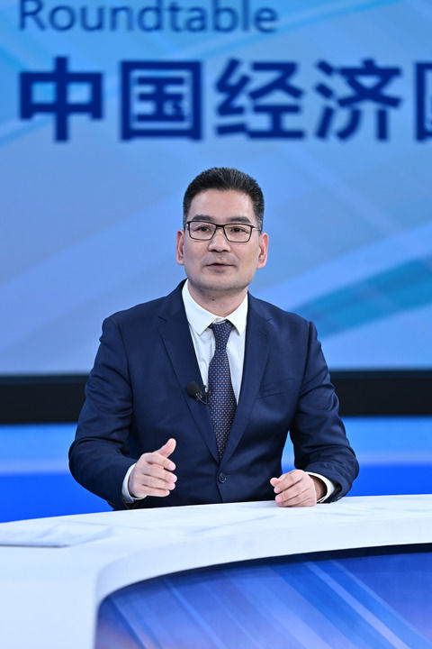 ??政府工作報告起草組成員、國務(wù)院研究室綜合一司副司長黃良浩在第十四期“中國經(jīng)濟圓桌會”錄制現(xiàn)場發(fā)言。新華社記者 李鑫 攝