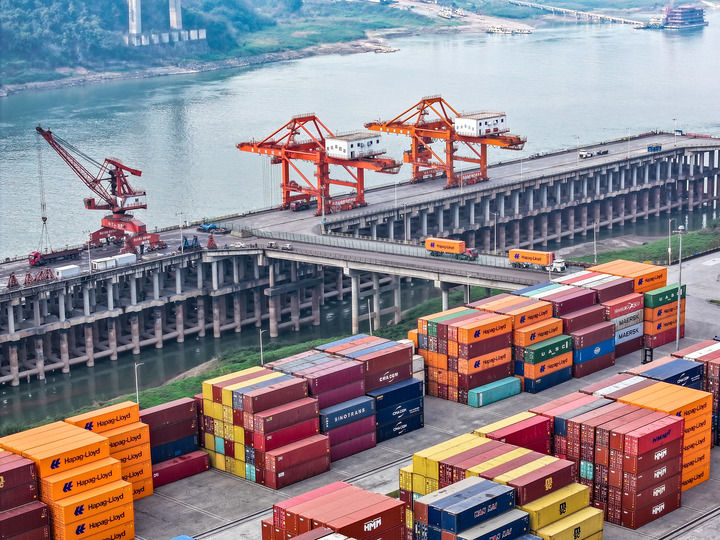 這是2025年2月25日拍攝的重慶兩江新區(qū)果園港(無人機照片)。新華社記者 唐奕 攝