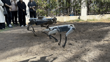 楊?。ㄗ蠖┖屯聻榭蛻粽故疽豢钚袠I(yè)應(yīng)用四足機(jī)器人。