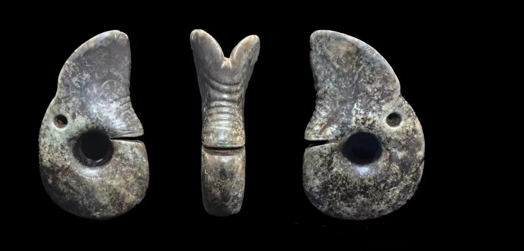 玉龍是紅山文化玉器的典型代表?,F(xiàn)藏于中國國家博物館的“C”形玉龍,因體形大、工藝精被譽為“中華第一龍”。2024年,紅山玉龍“家族”增添新成員,考古人員在內(nèi)蒙古赤峰市敖漢旗下洼鎮(zhèn)元寶山積石冢發(fā)現(xiàn)一件長15.8厘米、寬9.5厘米、厚3厘米的玉龍,是目前考古發(fā)掘出土的體量最大的一件玉龍。和玉龍一同出土的還有玉環(huán)、玉璧、玉蠶、玉鸮等百余件玉器。