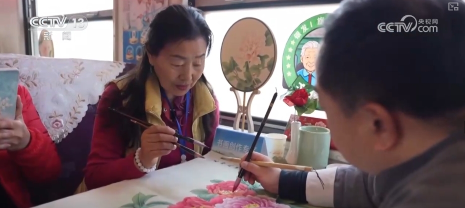 車行期間,列車上安排了豐富的活動(dòng),有歌舞表演、知識(shí)競(jìng)猜,還可以體驗(yàn)制作膠東花餑餑。此外,書畫創(chuàng)作區(qū)、心理咨詢區(qū)、健康監(jiān)測(cè)區(qū)等,也能讓旅客度過既充實(shí)又快樂的“慢時(shí)光”。