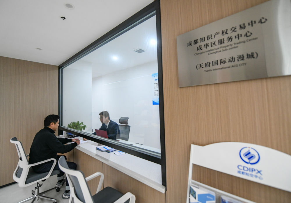 2月27日,民營企業(yè)工作人員在成都知識產(chǎn)權(quán)交易中心成華區(qū)服務中心咨詢相關(guān)政策。新華社記者 王曦 攝