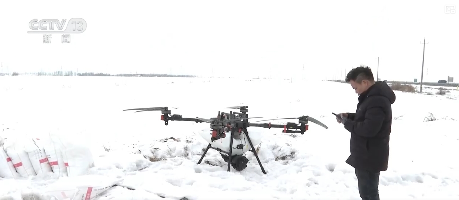 在烏蘇市八十四戶鄉(xiāng)楊家莊子村的高標準農(nóng)田里,目前,冬雪還未融化,種糧大戶正在通過植保無人機噴灑雪融肥,預(yù)防雪腐雪霉病。