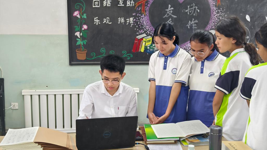 同樣來自山東的小伙兒蓋彥吉對支教事業(yè)抱有激情。2024年夏天,從中國農(nóng)業(yè)大學本科畢業(yè)后,他參加了學校的西部計劃研究生支教團,來到莎車縣第三中學任教。在教學工作中,蓋彥吉發(fā)現(xiàn),青年教師的天然親和力,能更好激發(fā)學生的求知欲。