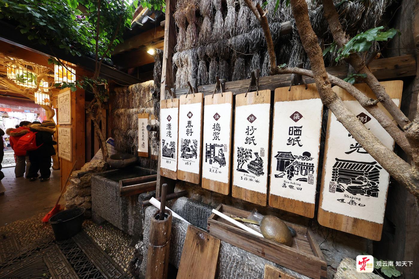 麗江古城內(nèi)以東巴文化體驗為亮點的“東巴紙坊”吸引著許多中外游客。在這里,游客們可以體驗到搗漿、抄紙、曬紙等東巴紙制作工藝,還能拿起東巴象形文字印章集章打卡。如果你好奇某個象形文字的含義,還能在這里買到一本東巴文“字典”,一一對照查看?!跋啾韧辏衲甓嗔瞬簧賮碜孕录悠?、馬來西亞的游客,東巴紙燈、明信片都是很受他們喜愛的產(chǎn)品。”東巴紙坊麗江銷售人員韓雨辰說。