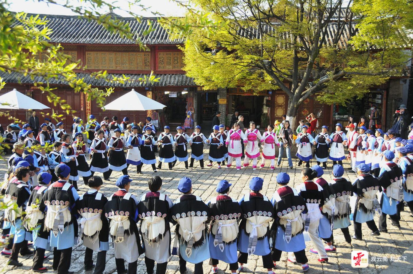 每周,和占強(qiáng)都會來到這里打跳,這曾是他的專業(yè),如今是他的愛好。和占強(qiáng)過去在麗江市民族歌舞團(tuán)工作,即便退休了仍然以傳承民族文化為己任。平時,他白天常常來到四方街打跳。他介紹,最少的時候打跳隊伍都有30多人,各族群眾手牽手跳起藏族、白族、納西族等民族舞蹈,相親相愛、和諧友好。