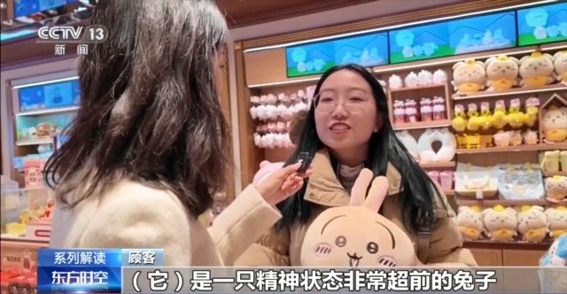 顧客:它是一只精神狀態(tài)非常超前的兔子,就是在生活當(dāng)中只要是自己開心就可以了。所以我覺得對于當(dāng)代青少年或者當(dāng)代青年來說,不管是工作也好,上班上學(xué)也好,它這種心理狀態(tài)是非常好的。