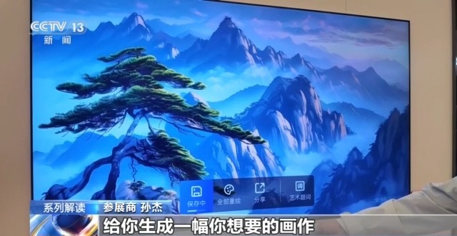 參展商 孫杰:只要說出你想要的畫面內(nèi)容,它就會很短的時間給你生出一幅你想要的畫作。既可以作為自己的畫作在電視上欣賞,也可以通過微信掃碼復(fù)制到電腦手機上作為桌面。