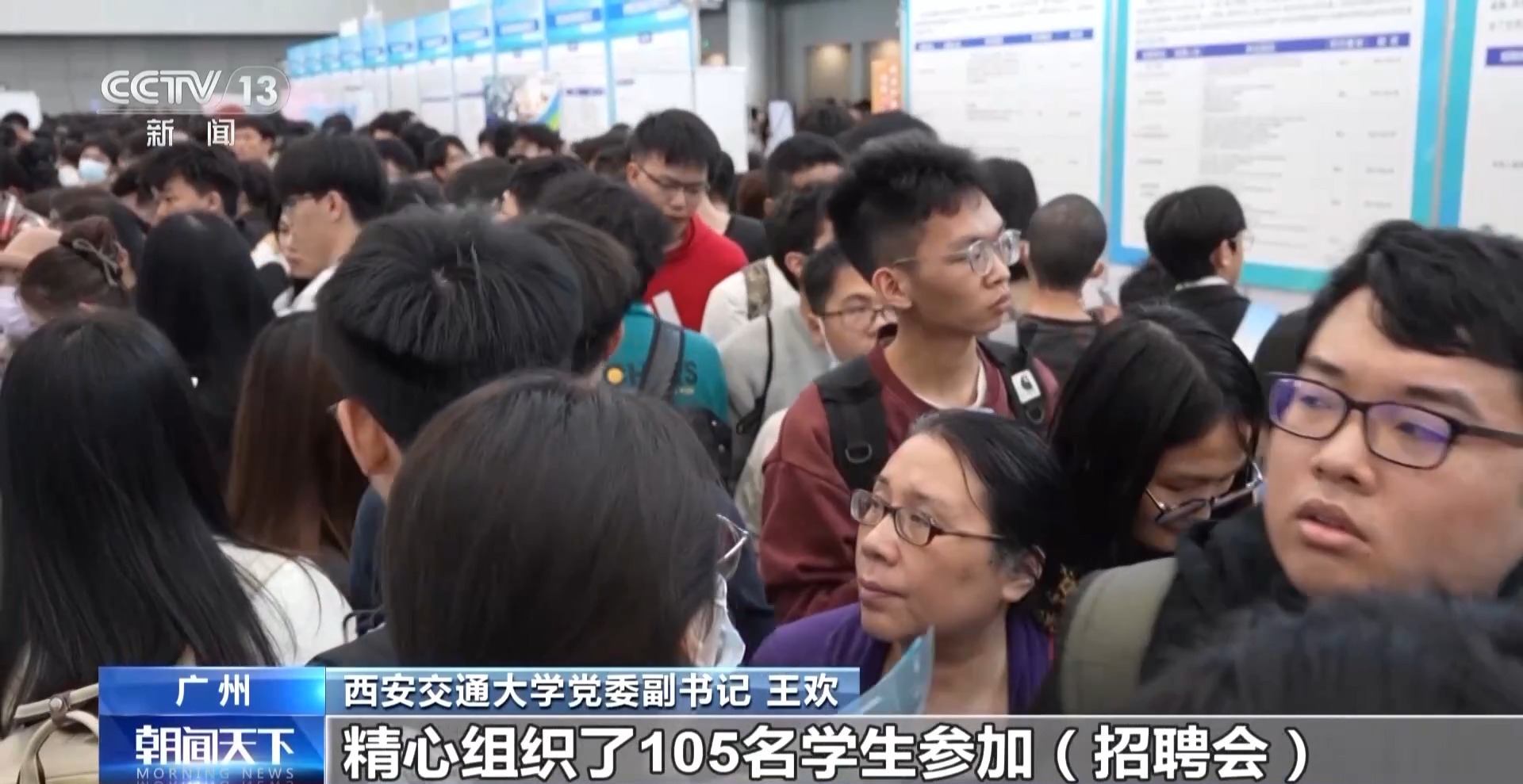 總臺央視記者 唐蕾:在廣州市琶洲廣交會展館,和往年比,今年春招規(guī)模擴大了近3倍,在這里,不僅有一站式的招聘會,還有人工智能與機器人專場項目對接會等多種人才對接活動。