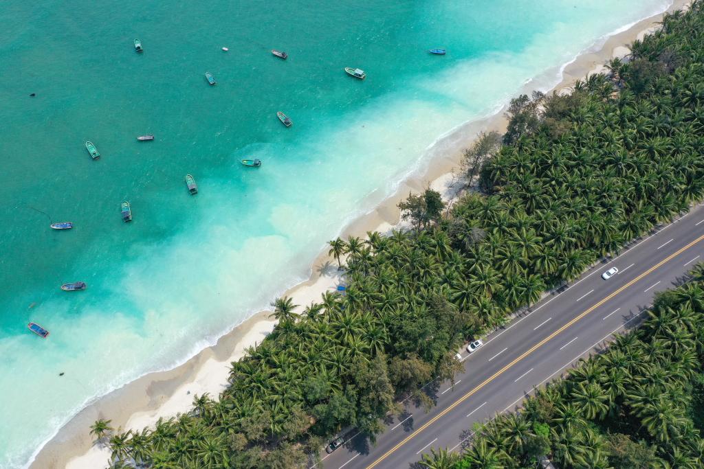 這是3月21日拍攝的海南環(huán)島旅游公路海南瓊海段(無人機(jī)照片)。新華社記者 郭程 攝