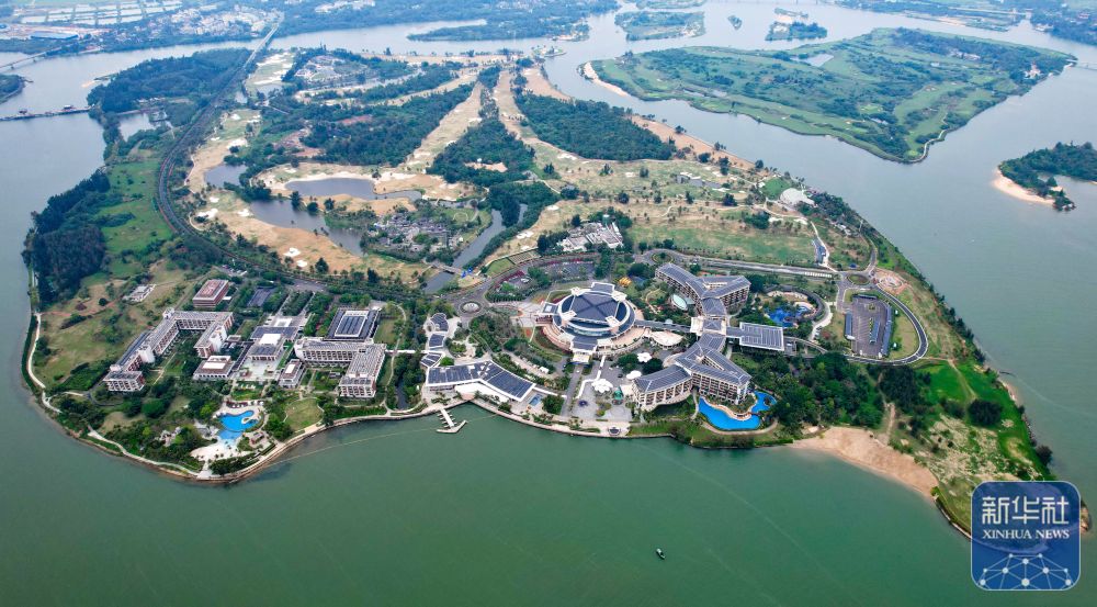 ↑ 博鰲零碳示范區(qū)所在地海南省瓊海市博鰲鎮(zhèn)東嶼島(3月19日攝,無人機照片)。