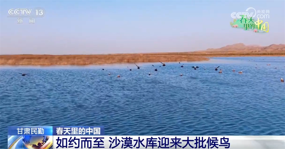 甘肅民勤:如約而至 沙漠水庫(kù)迎來大批候鳥