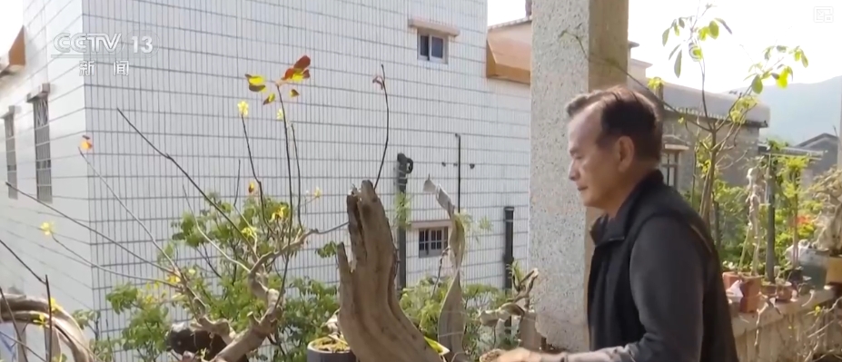 70歲的丁偉洪來自澳門。2024年,他在珠海金灣區(qū)三灶鎮(zhèn)木頭沖村租下了一套石頭屋。經(jīng)過簡單裝修改造后,丁偉洪在這里養(yǎng)花、種菜,制作根雕,生活非常愜意。