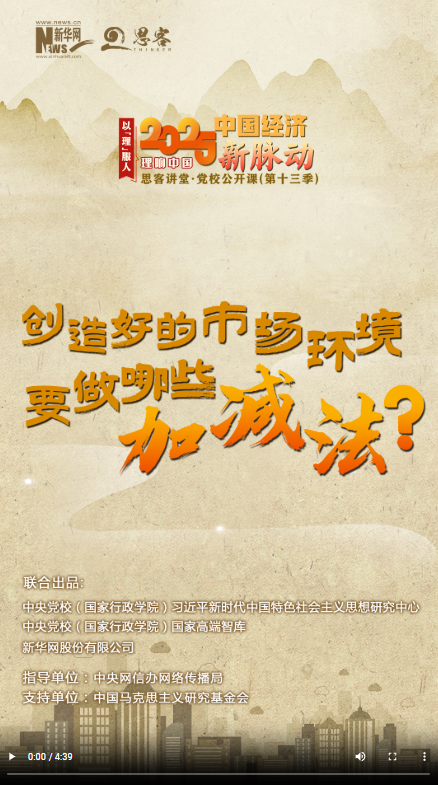 新一季“思客講堂·黨校公開課”《理響中國·以理服人|2025中國經(jīng)濟新脈動》,帶你讀懂2025年經(jīng)濟工作重點。2025年開年以來,杭州“六小龍”刷屏全網(wǎng),掀起科創(chuàng)熱潮。究其原因,離不開當?shù)亓己玫臓I商環(huán)境。可以說,好的市場環(huán)境,既是城市競爭的關鍵性“軟實力”,也是經(jīng)濟高質量發(fā)展的“硬支撐”。創(chuàng)造好的市場環(huán)境要做哪些“加減法”?如何充分激發(fā)各類經(jīng)營主體活力?中央黨校(國家行政學院)經(jīng)濟學教研部講師王松對此進行解讀。