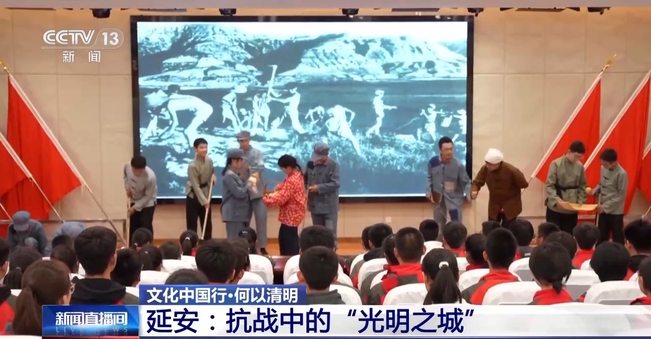 清明節(jié)前夕,在延安職業(yè)技術(shù)學院附屬中學,學生們通過一堂跨越時空的思政課,“走進”抗戰(zhàn)時期南泥灣大生產(chǎn)的現(xiàn)場。