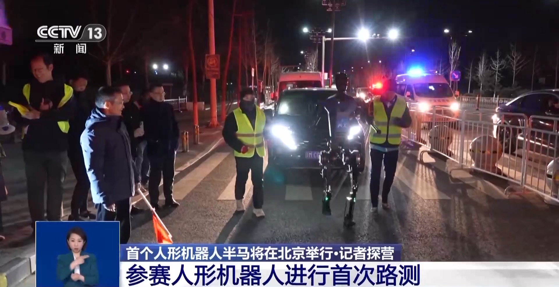 3月28日晚,在北京亦莊,報名參加北京亦莊半程馬拉松的機(jī)器人進(jìn)行了第一次實(shí)地路面測試。