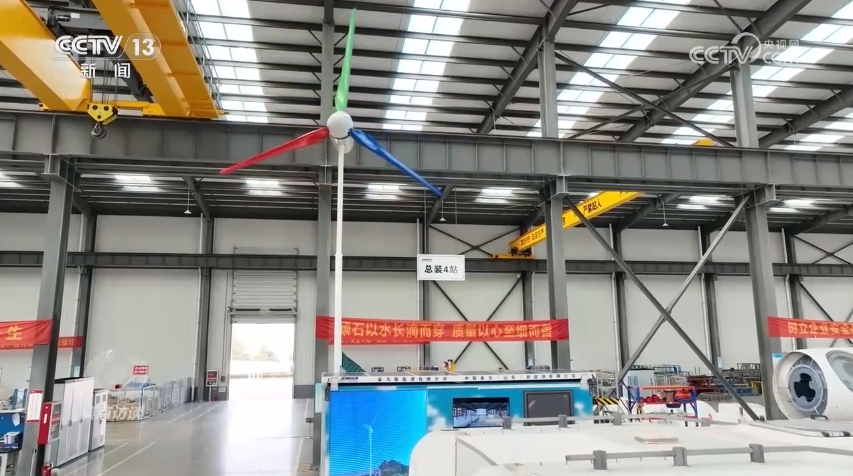 在山東一家新能源企業(yè)廠區(qū),技術(shù)人員正在對百千瓦級風(fēng)力發(fā)電機組進行調(diào)試、檢測,組裝完成后將發(fā)往海外市場。這家企業(yè)今年前兩個月的海外風(fēng)光儲訂單已經(jīng)突破3億元。